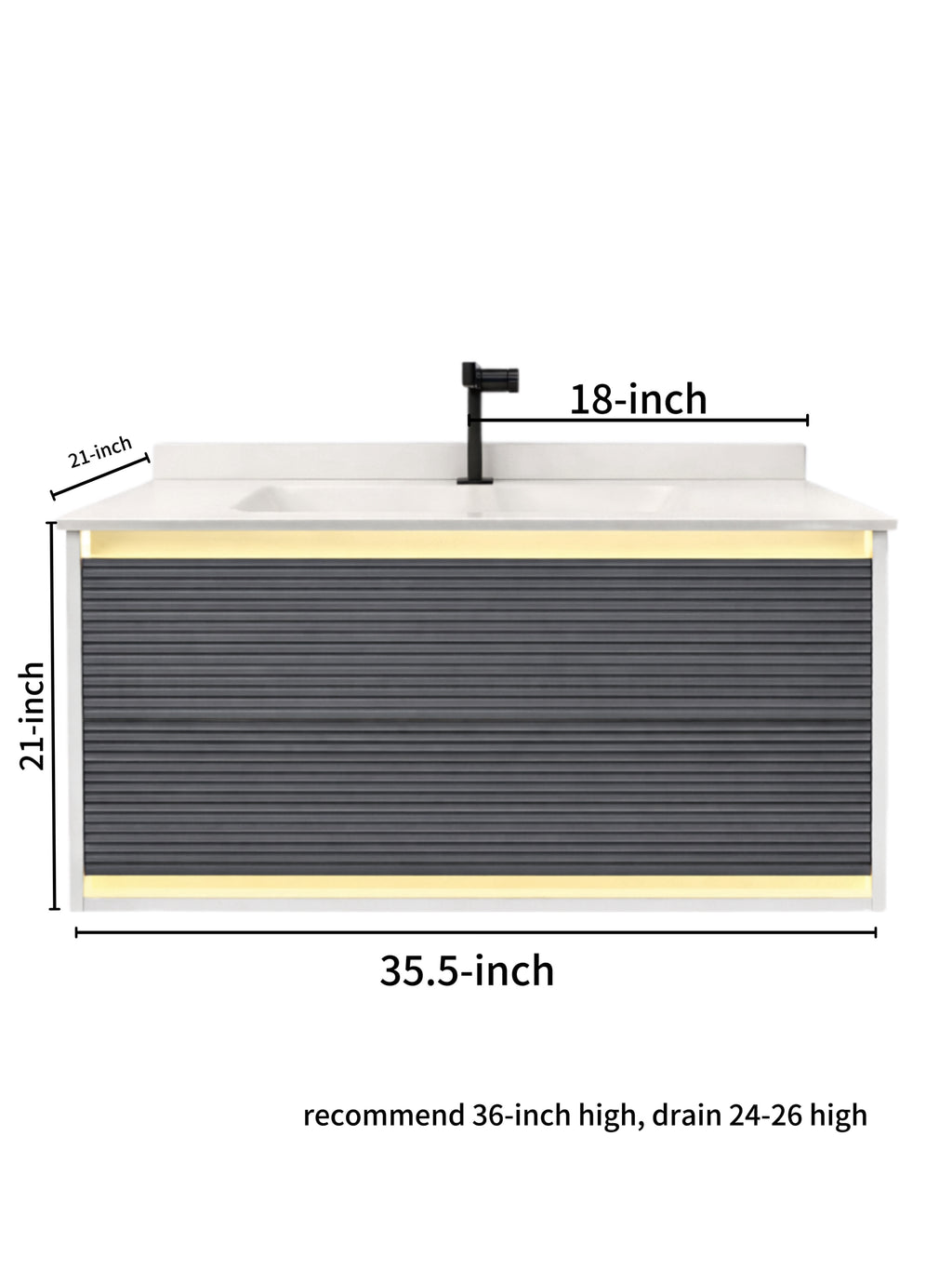 24'' 36''- Floating Vanity | Sintered Stone Platform Top | Motion-Sensor Waterproof LED | 005