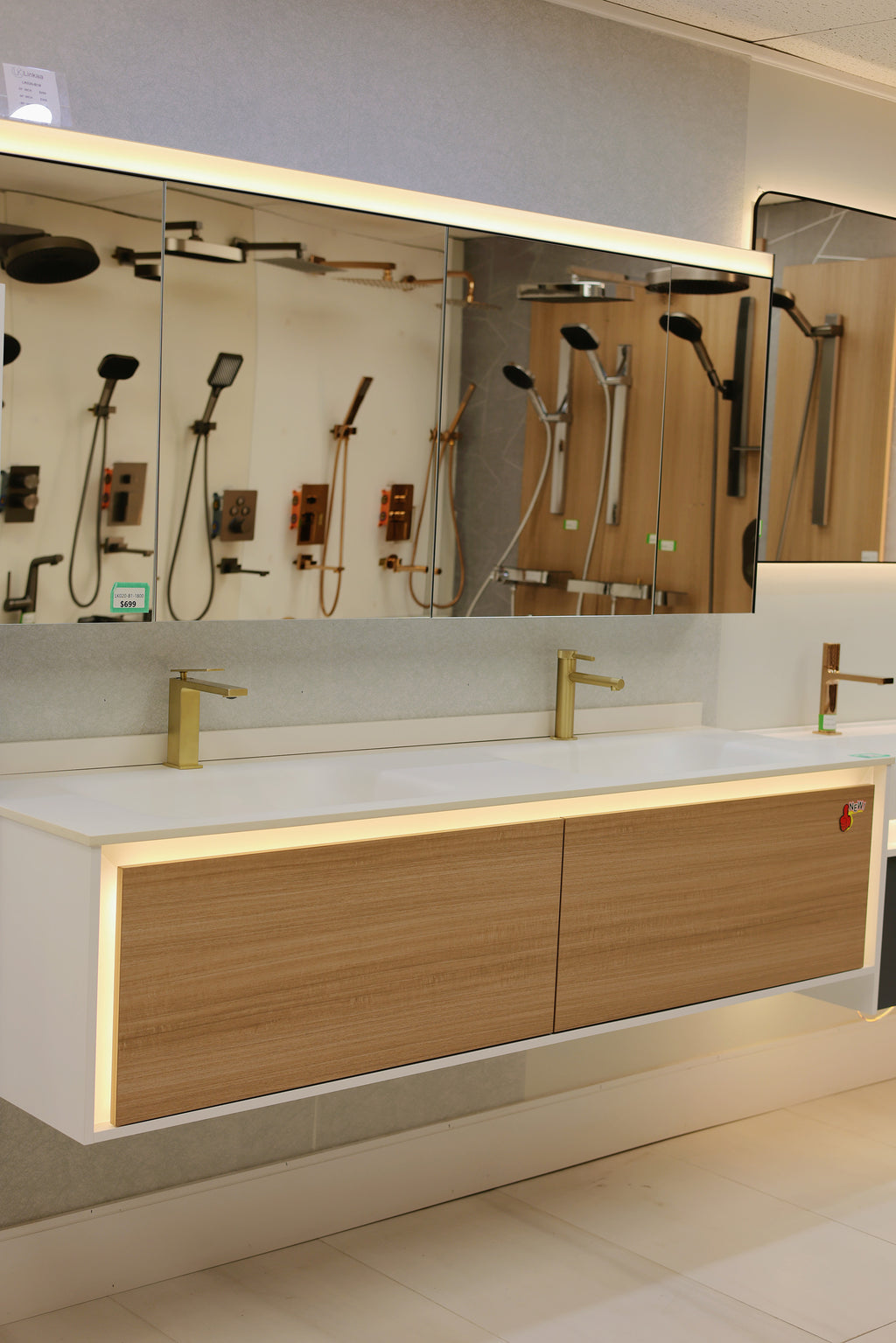 Linkaa- Dark wood Vanity | Matte White Sintered Stone Top | Motion-Sensor Waterproof LED | Double Basin